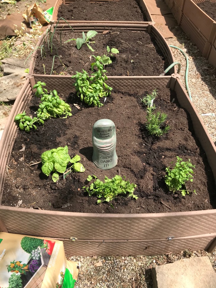 7 different tomato plants have been put in buckets (they don’t like my raised beds), 1 cubanelle pepper, bok choy, Swiss chard, 5 different cucumber plants, artichokes, 3 different kinds of carrots, 3 different kinds of beets, 3 different kinds of radishes, butternut squash, a melon that I can’t recall the name of, two kinds of pop corn and a variety of herbs! That should keep me busy for the summer!
